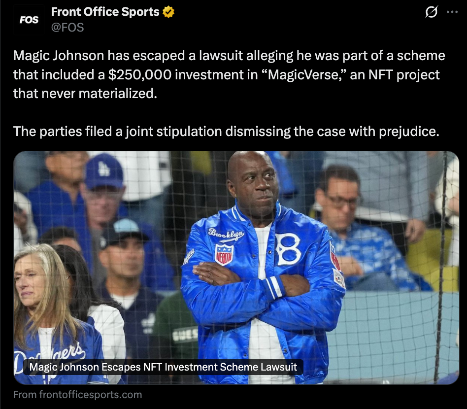 - MagicVerse NFT lawsuit tied to Magic Johnson dismissed permanently