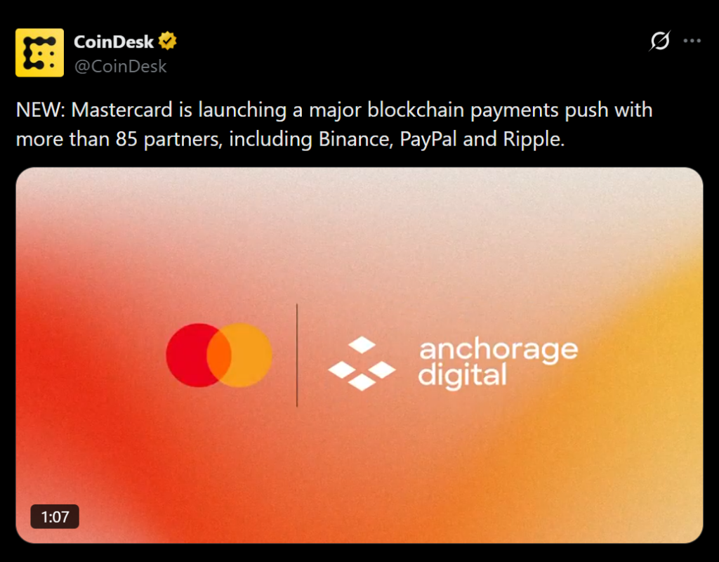 • Mastercard invites Ripple, Binance, and PayPal to join a new crypto partner program