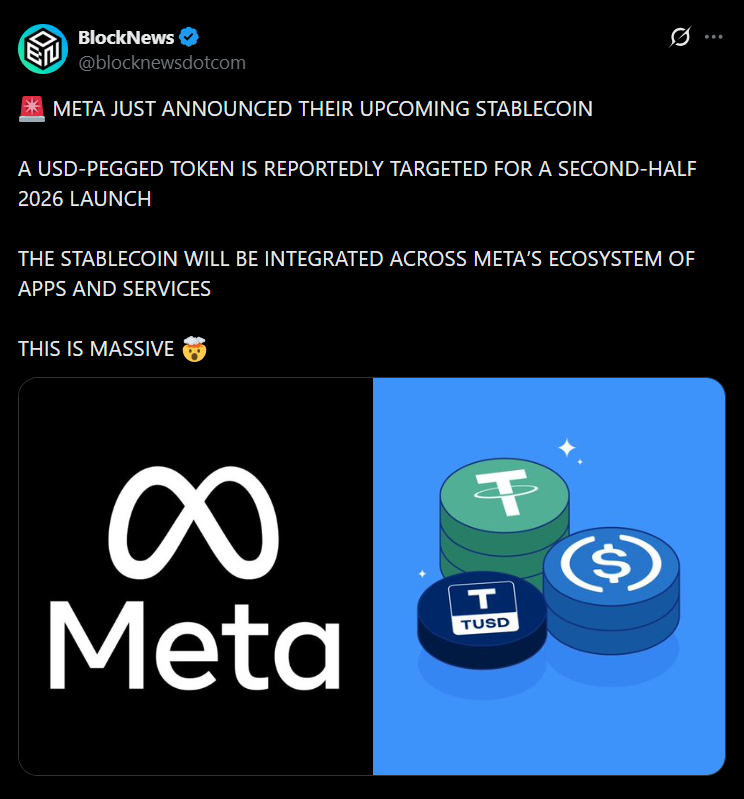 - Meta plans to re-enter stablecoins in the second half of 2026