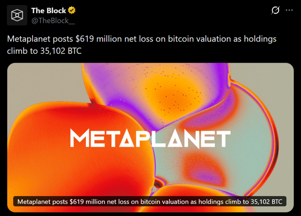 Metaplanet’s $619 million loss is not a collapse in business performance. It is the visible cost of holding large amounts of Bitcoin during a downturn. The company remains operationally profitable and deeply committed to its BTC strategy. The real question for investors isn’t whether Metaplanet can operate. It’s whether Bitcoin’s long-term trajectory justifies the volatility along the way.