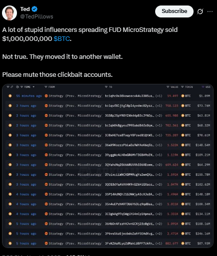 MicroStrategy found itself at the center of fresh market drama after large transfers from its Bitcoin wallets triggered speculation of a massive $1 billion BTC sell-off. As soon as blockchain watchers flagged the movements, social media influencers rushed to frame them as evidence that the company was exiting a significant portion of its position. This narrative quickly fueled fear among retail traders already on edge from Bitcoin’s latest price drop. In reality, however, the story was built on misreading on-chain data rather than any confirmed liquidation.