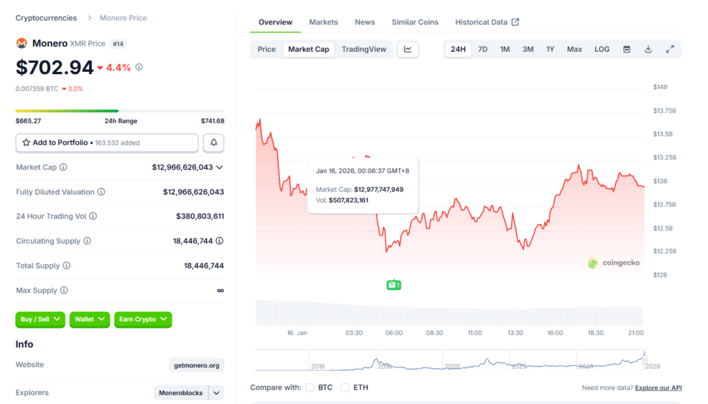 The rally was also amplified by turmoil elsewhere in the privacy sector. Internal conflicts within the Zcash ecosystem, including the departure of its core development team, likely pushed some investors to rotate capital into Monero. As confidence in competing projects wavered, XMR absorbed much of that demand.