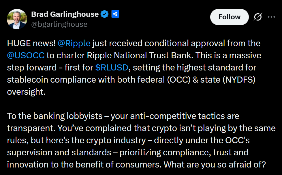 Crypto-native firms are moving deeper into the U.S. financial system after the Office of the Comptroller of the Currency (OCC) conditionally approved five national trust bank charter applications, including Ripple National Trust Bank and BitGo Bank & Trust. The decision marks another step toward integrating digital asset companies into federally regulated banking infrastructure.