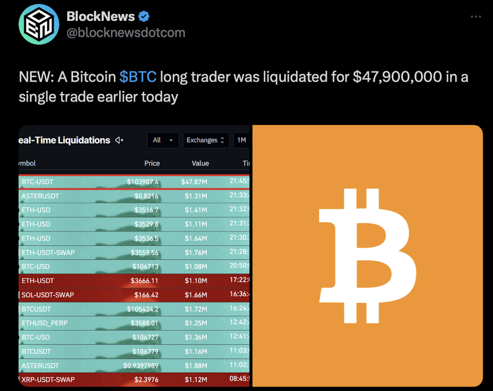 - Bitcoin’s drop from $112K to below $106K wiped out over $1.27B in leveraged positions.