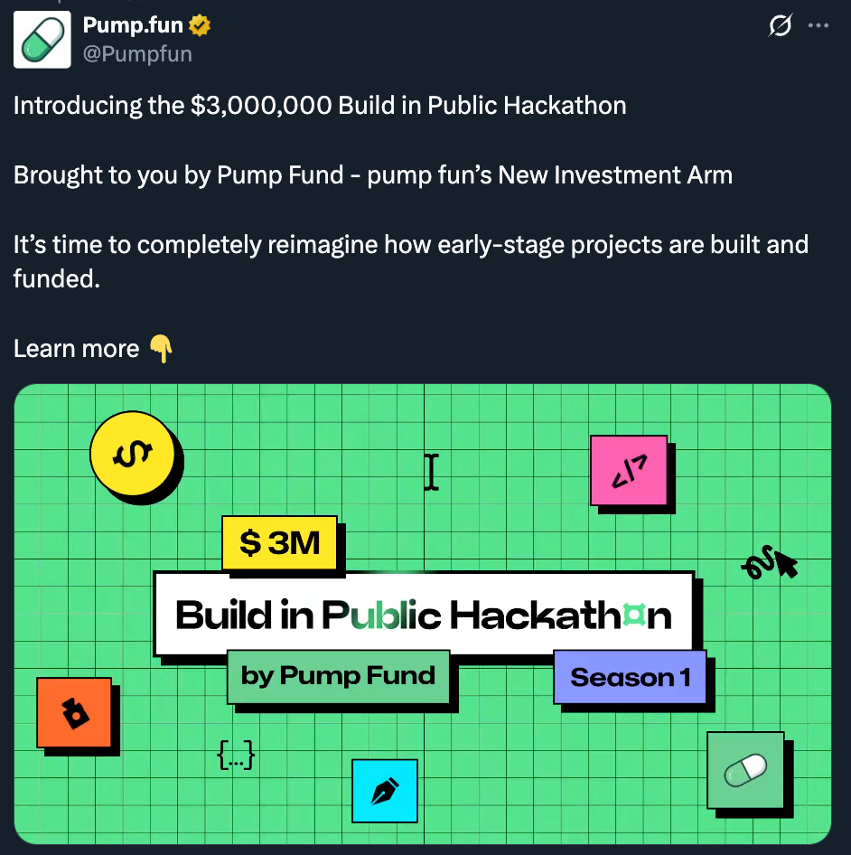 - Pump.fun launched a $3M build-in-public hackathon through its new Pump Fund.