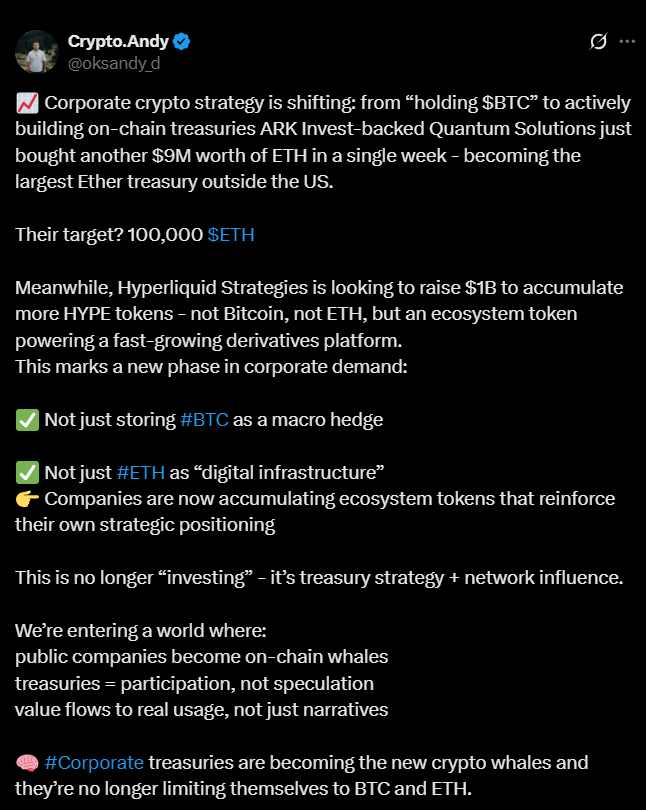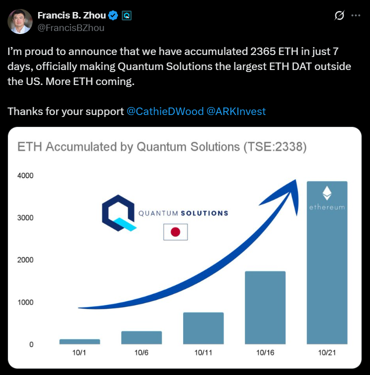 Quantum’s stock has risen 17% year-to-date, boosted by investor optimism around its expanding exposure to Ethereum and blockchain assets. The company’s ETH holdings now represent one of the largest among Asian firms, signaling a deepening regional embrace of digital assets for treasury diversification and liquidity management.