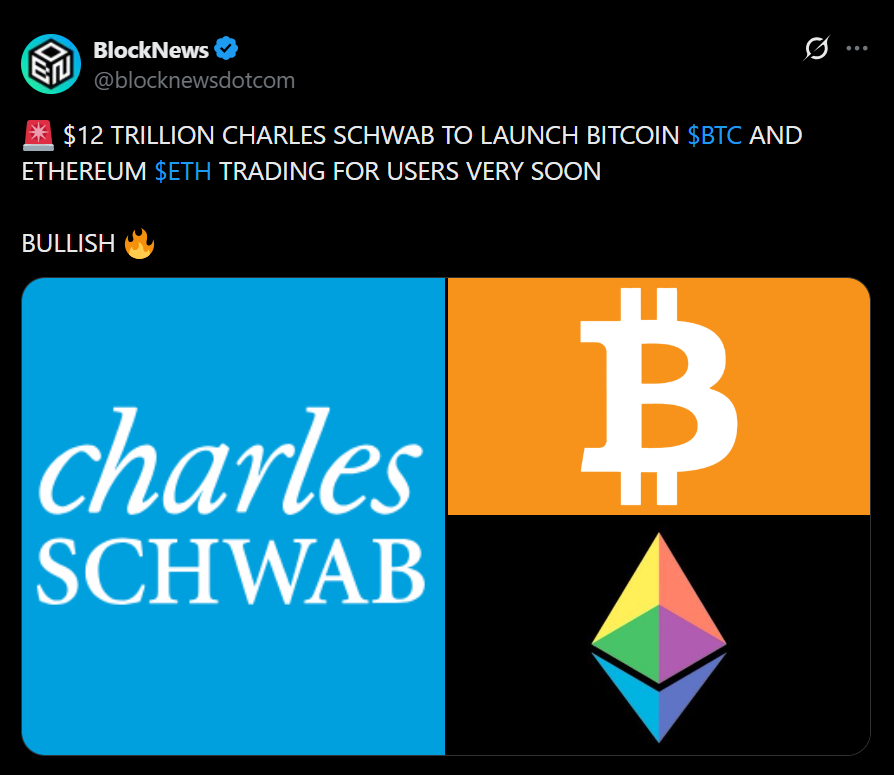 Schwab Enters Bitcoin Trading With $12T Backing – Here Is Why Crypto Shifts
