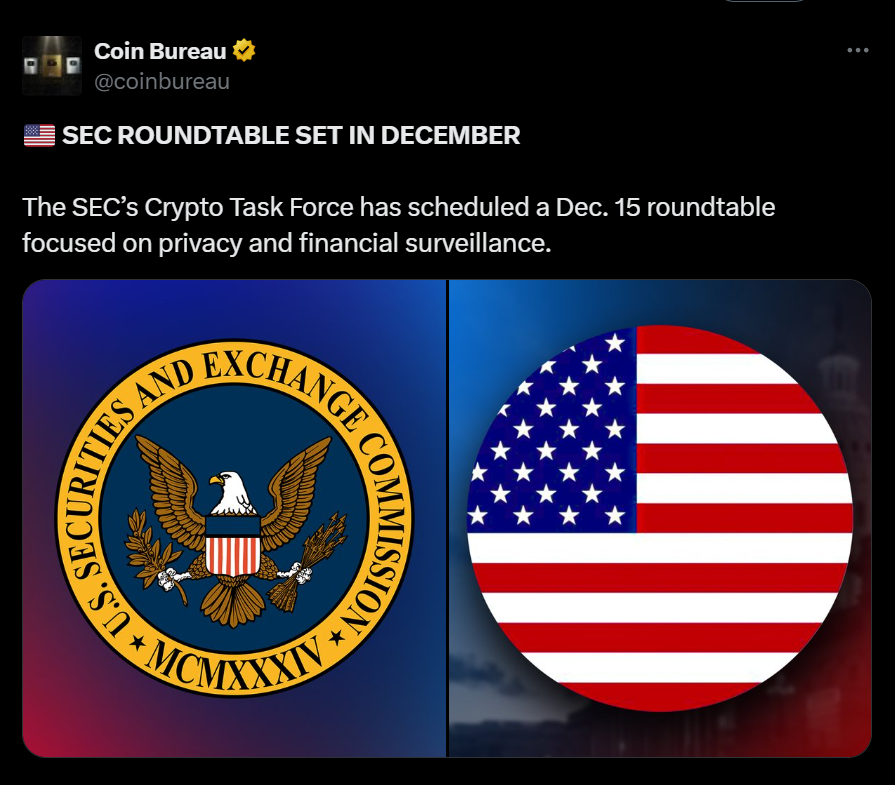 - The SEC will host a major crypto privacy roundtable on December 15.
