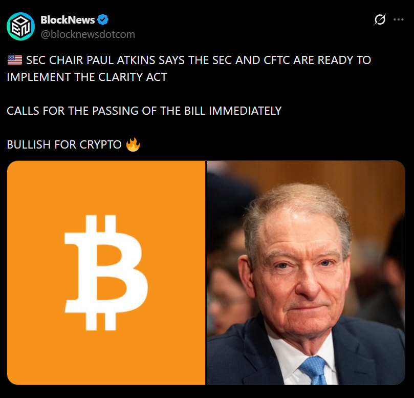 SEC Chair Paul Atkins confirmed that “Project Crypto” isn’t theoretical planning anymore. It’s a full operational framework designed so that the moment the CLARITY Act passes, implementation begins almost immediately.