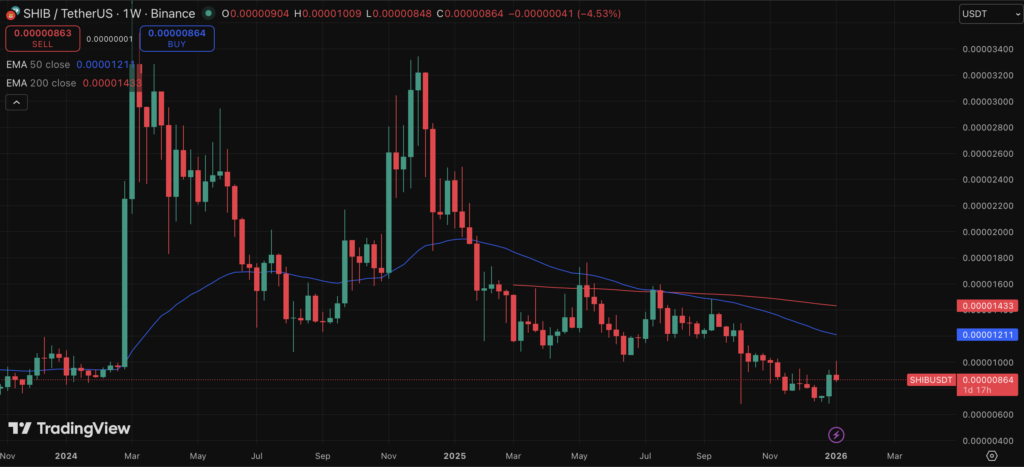 Another bearish signal comes from exchange net flows, which have recently flipped positive. In plain terms, more SHIB is being deposited than withdrawn, suggesting selling pressure is outweighing demand right now. This shift lined up closely with SHIB’s yearly high, and the broader market hasn’t helped either. Bitcoin pulling back toward $90,000 after flirting with $94,000 seems to have cooled risk appetite across the board, SHIB included.