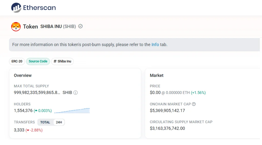 Data from Etherscan shows that the number of SHIB wallets currently stands at around 1,554,376. Over the past fifteen months, only about 54,000 new wallets have joined the network. That translates to roughly 120 new holders per day, a surprisingly modest figure for one of the most widely recognized meme coins in crypto.