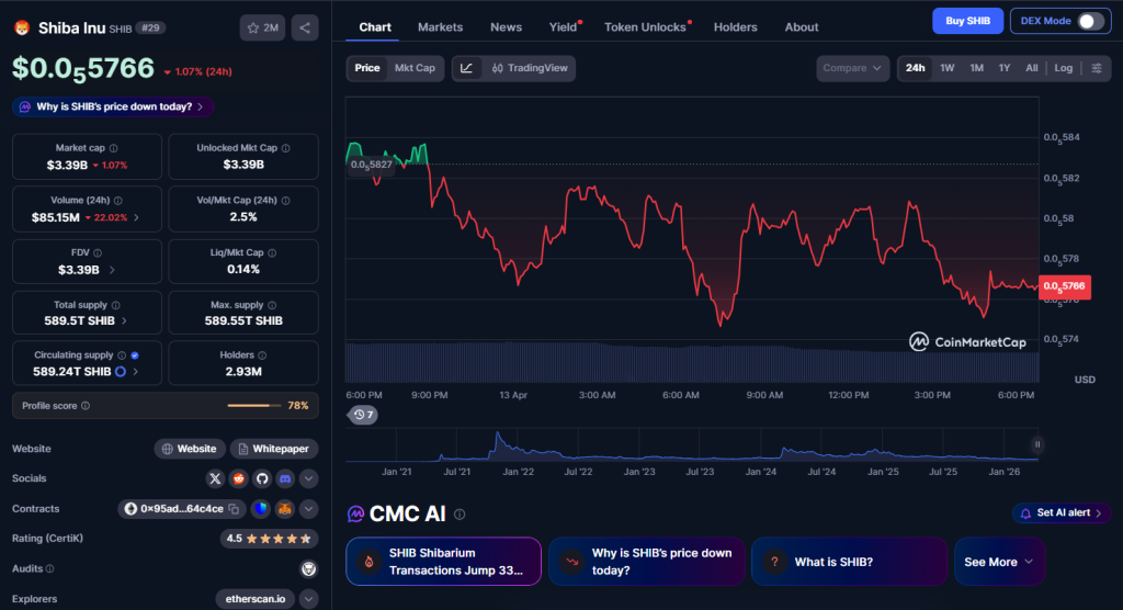 What stands out more is how current levels compare to past cycles. SHIB is now trading below where it sat during parts of the 2022 crash, which adds a layer of pressure, or maybe opportunity, depending on how you look at it. Either way, it’s not where holders hoped it would be by now.