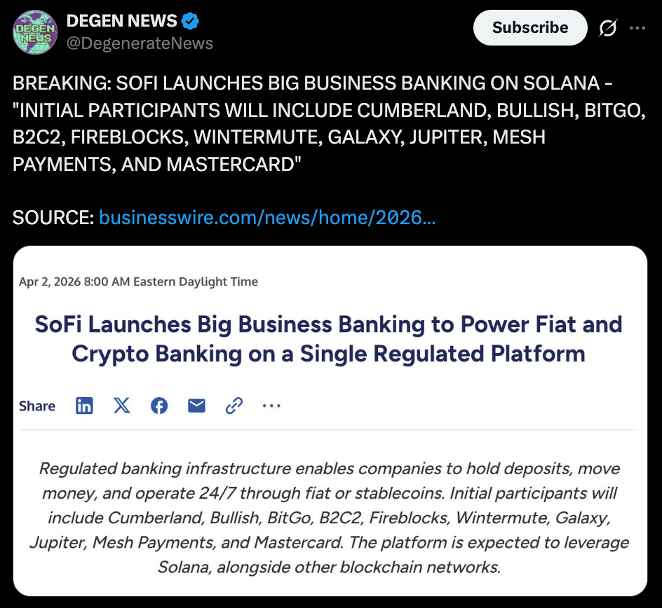 SoFi is trying to collapse all of that into a single regulated environment. Companies can manage both fiat and digital assets in one place, while also handling liquidity and payments in real time. It’s not flashy, but it solves a very real operational problem, especially for institutions moving large amounts of capital.