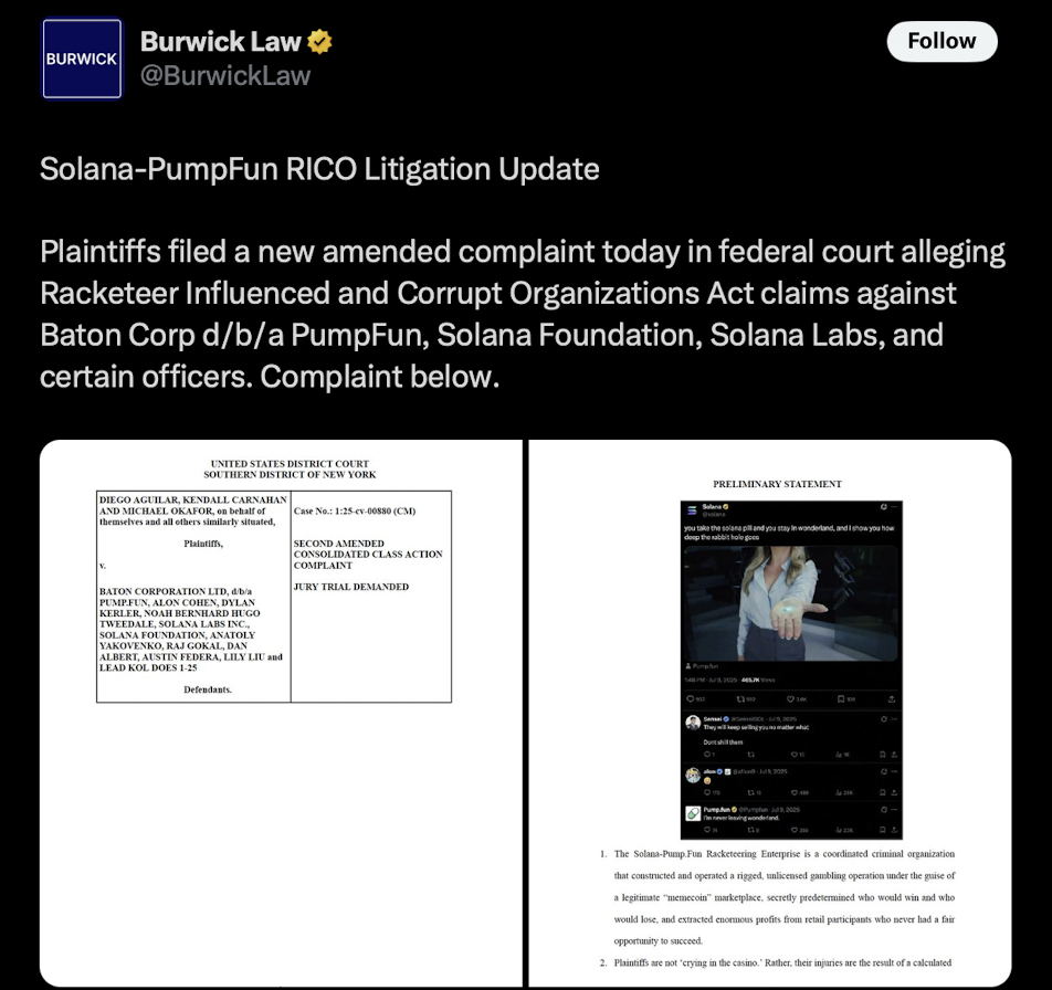 The immediate trigger, though, was legal risk. A recent class-action lawsuit tied to Pump.fun reportedly pulled other Solana-related entities into focus, including the Solana Foundation. The allegations claim that certain token launches were structurally tilted in favor of insiders, using validator access and transaction-ordering tools to secure the best prices before public buyers could participate.