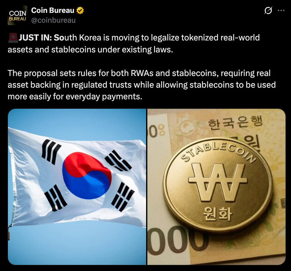 • South Korea moves to legalize RWAs and stablecoins under clear rules