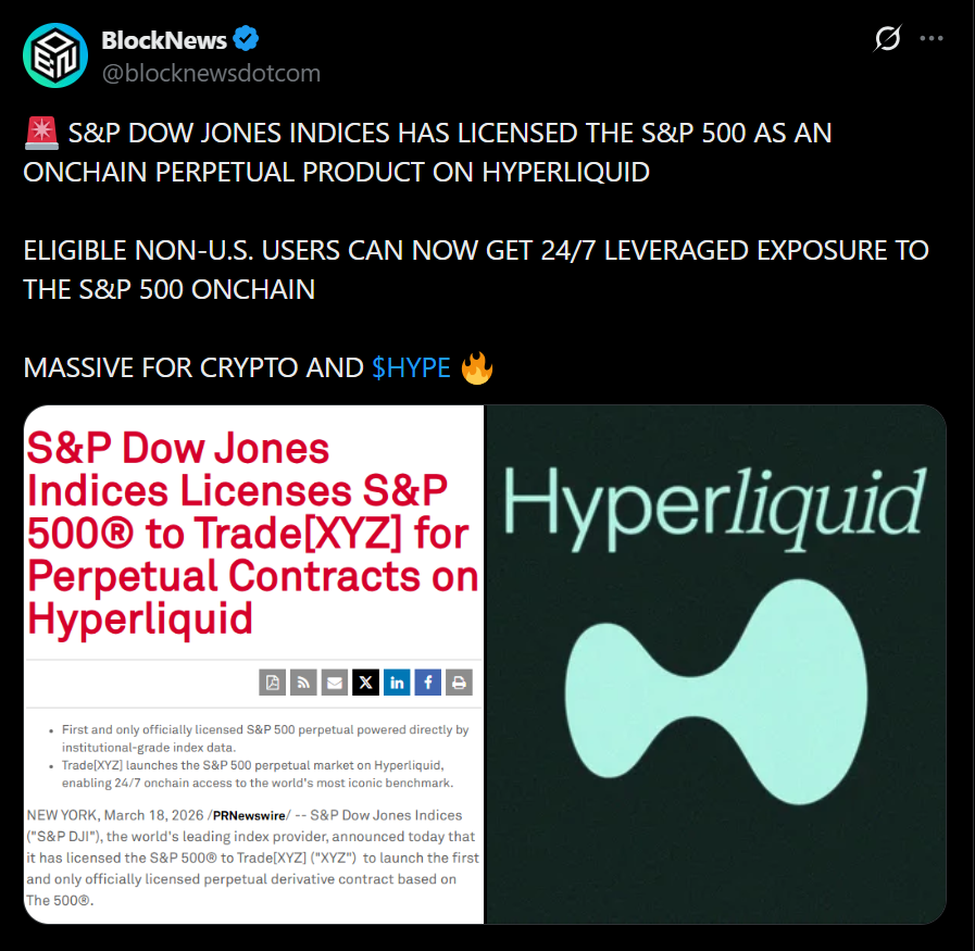 The S&P 500 has officially entered the crypto world in a way that feels… pretty significant. Through a new licensing deal, the benchmark index can now be traded as a perpetual contract on-chain, giving investors round-the-clock access to one of the most important financial indicators globally.