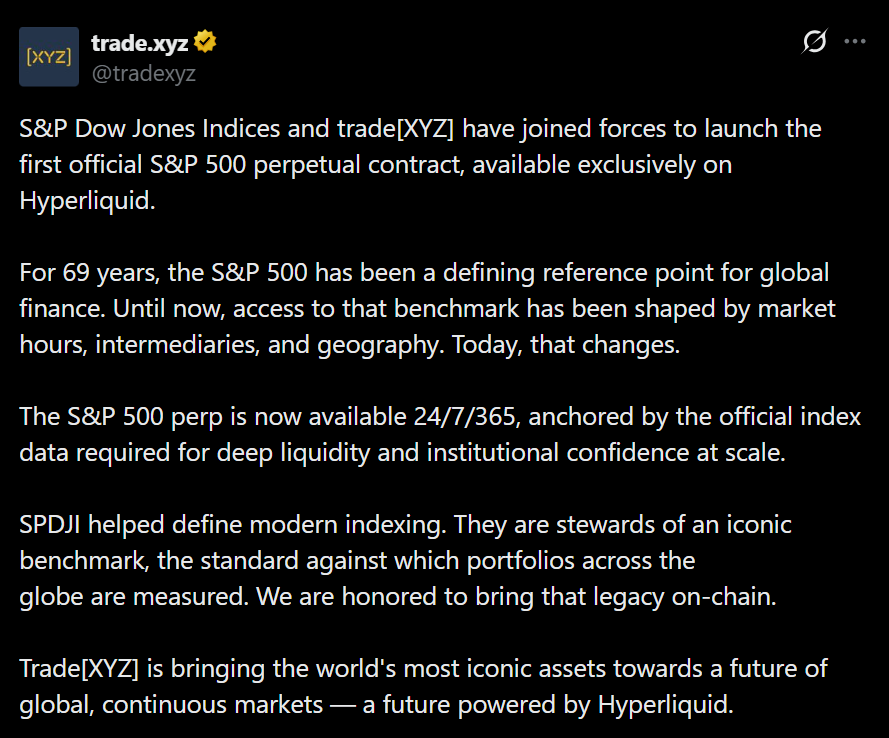 • S&P 500 perpetual contracts are now available for 24/7 trading on-chain