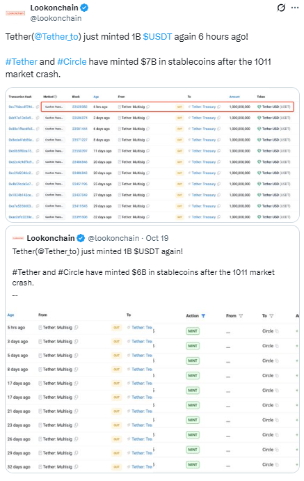 Tether just printed another $1 billion USDT, pushing the combined total of new issuance from Tether and Circle to $7 billion since the last market pullback. It’s a sign that demand for dollar-pegged assets remains strong, especially as global markets wobble. Tether also hit an eye-popping milestone of 500 million users — and according to them, those aren’t just wallet addresses but real people. That’s roughly 6% of the global population that has used or held USDT at some point.