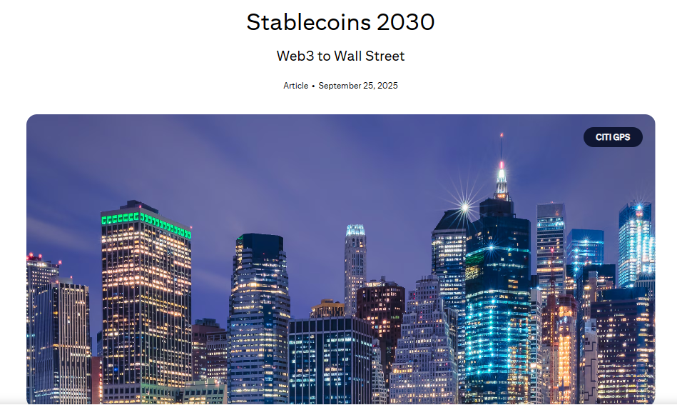 • Citi projects the stablecoin market could grow to $1.9T by 2030, reshaping global liquidity.