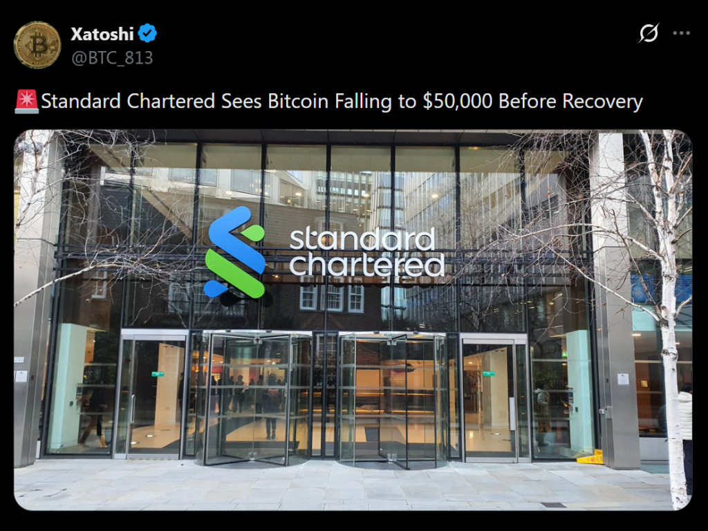 • Standard Chartered warns Bitcoin could drop to $50,000 and Ethereum to $1,400