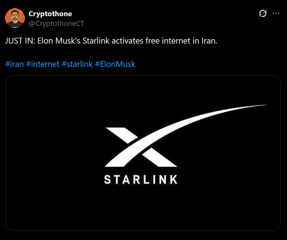 - Starlink has enabled free internet access for existing users in Iran during a major blackout.