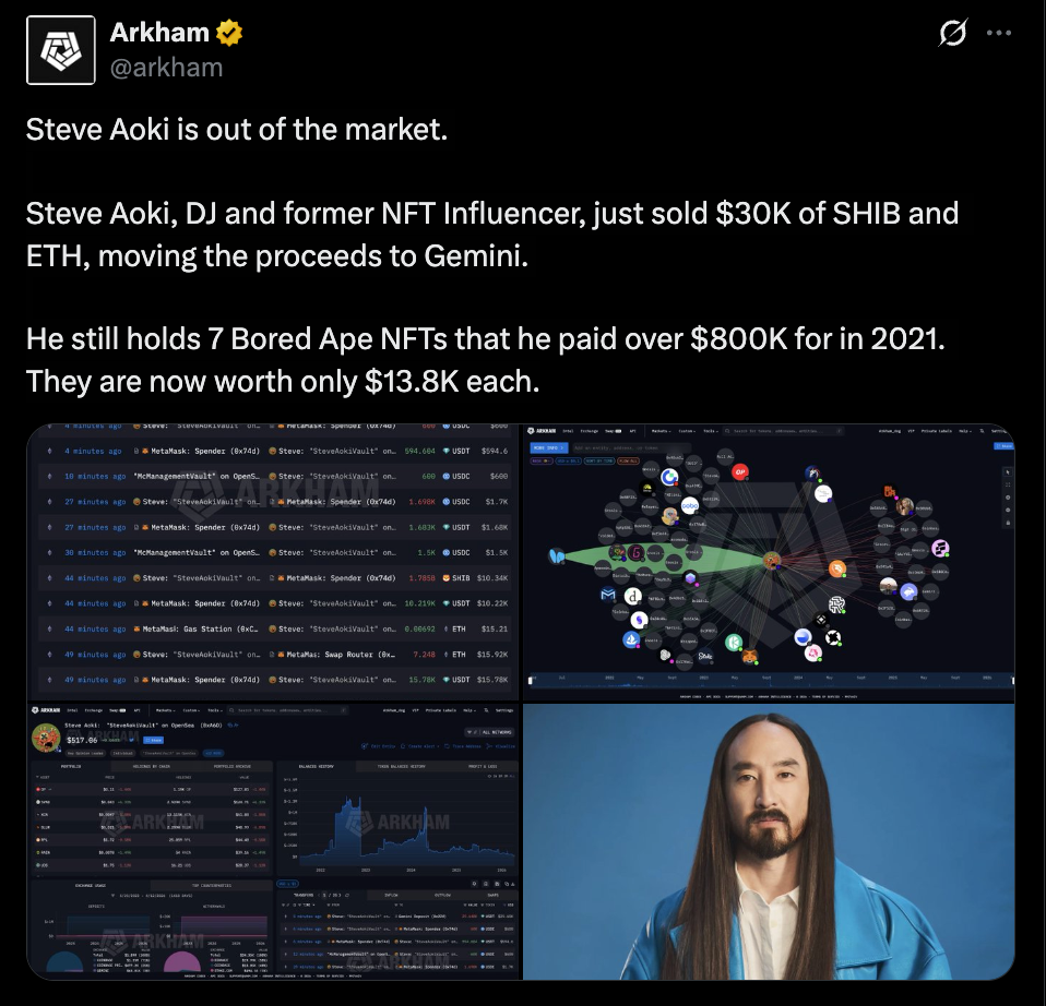 - Aoki sold $30K in SHIB and ETH in a quiet move