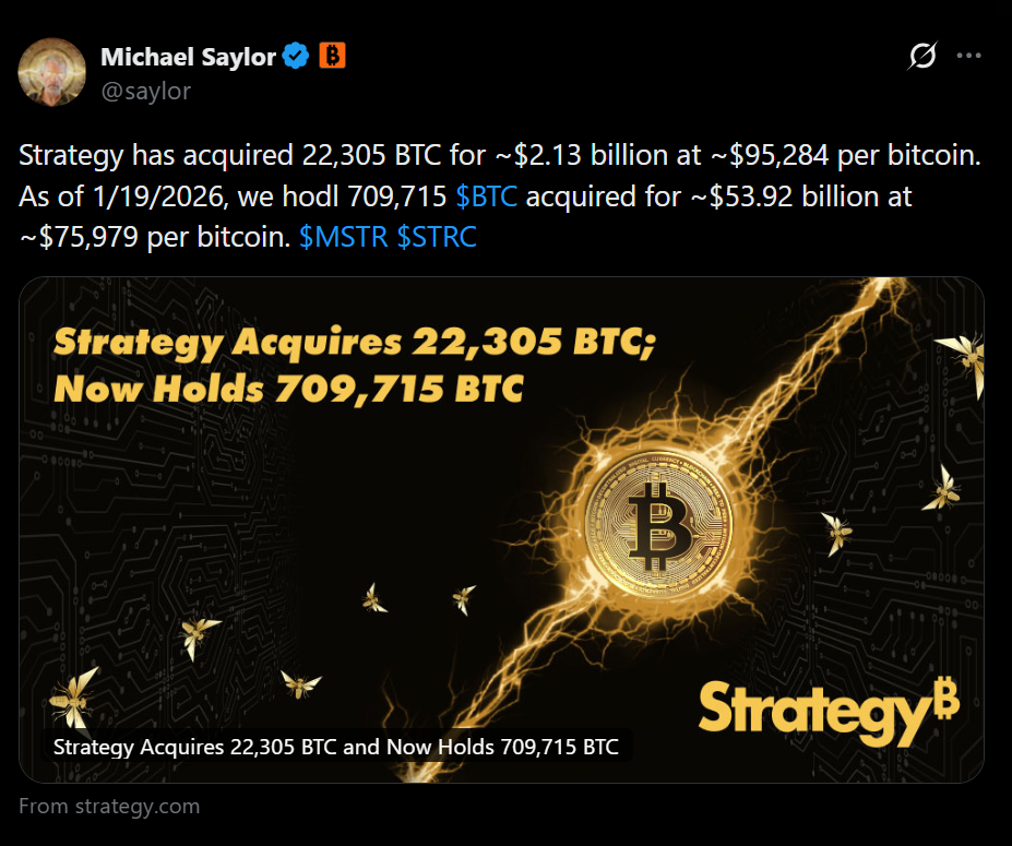 - Total holdings now stand at roughly 709,715 BTC, worth about $65 billion.