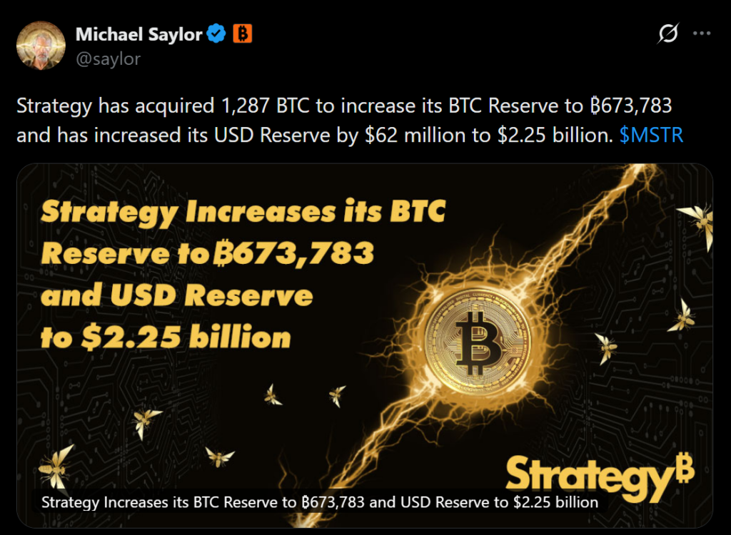 - Strategy purchased 1,286 BTC worth $116 million, extending its aggressive accumulation strategy.