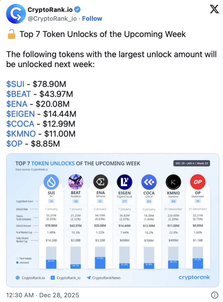 SUI has been moving quietly over the past few sessions, trading inside a tight range and refusing to pick a direction just yet. The price action feels controlled, almost deliberate, rather than driven by panic or aggressive repositioning. That calm showed up right as the market digested a scheduled $78.9 million token unlock, an event that usually shakes things up more than this.