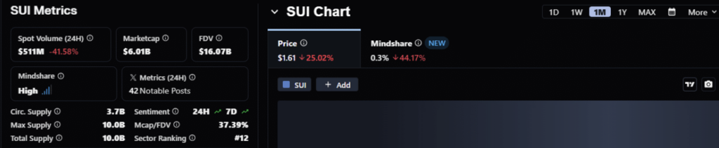 While upgrades like this are great for long-term growth, traders usually react to faster-moving triggers: liquidity spikes, volatility, yield boosts, that sort of stuff. And honestly, SUI’s metrics aren’t exactly exploding at the moment.