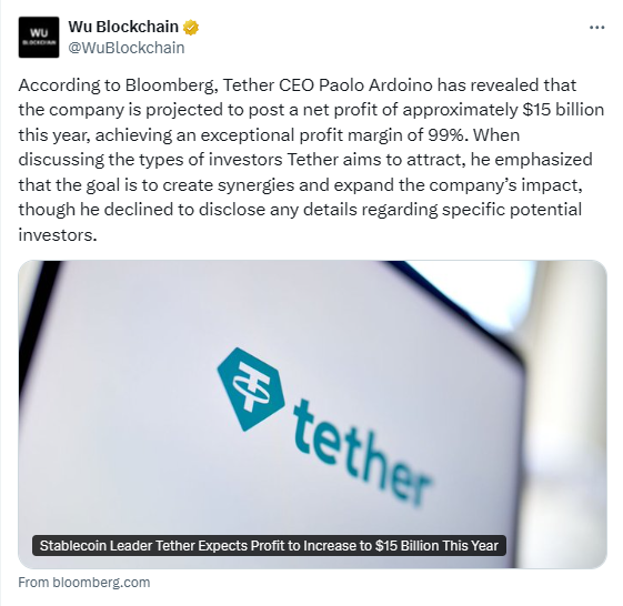 Tether Eyes $15 Billion Profit as Stablecoin Market Booms
