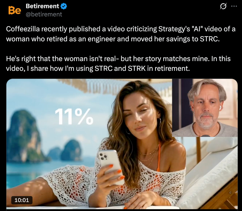 What gets lost in all of this, though, is that the core idea behind the ad isn’t entirely fictional. There are real retirees using STRC and STRK as part of their income strategies, not because they were tricked by an AI video, but because they evaluated the risk and decided it worked for them.
