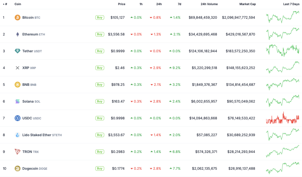 - TRON (TRX) is the only top-10 crypto in the green today, up 1.4% on the day and 81% since November 2024, even as the broader market consolidates.
