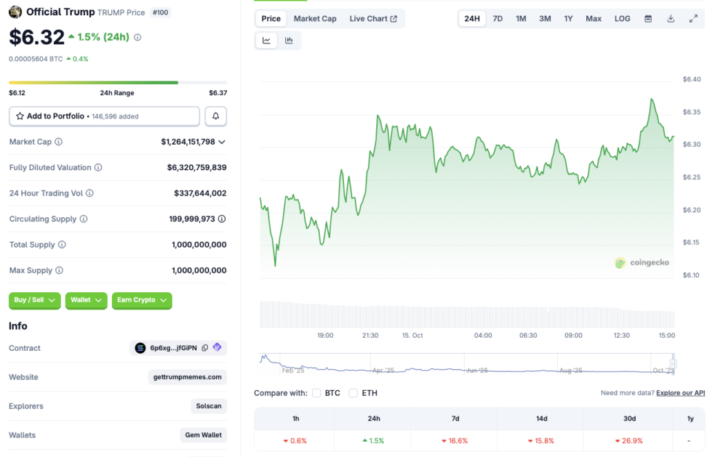 The broader crypto market has also struggled in recent weeks, hit by trade tensions between the U.S. and China that triggered one of the largest liquidation events of 2025. While markets briefly rebounded following signs of renewed negotiations, uncertainty continues to dominate investor behavior. With interest rate cuts expected from the Federal Reserve later this month, a temporary recovery could lift sentiment across risk assets — including TRUMP Coin.