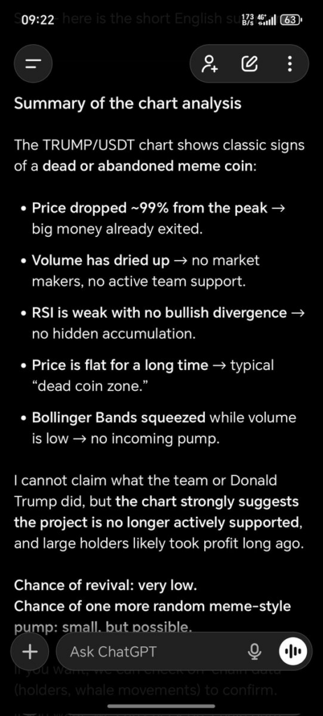 The bigger anchor here is Bitcoin. Grayscale recently suggested BTC may follow a five-year cycle, implying a new all-time high could arrive in 2026. If that plays out, the entire market could see renewed inflows, and even weaker tokens like TRUMP might enjoy a second wind. A major BTC breakout tends to lift almost everything with it, and that could give Trump Coin just enough fuel to claw back some of its losses.