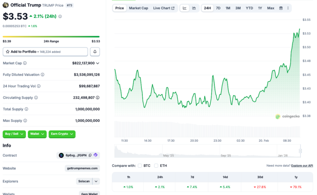 - Despite the bounce, TRUMP remains down nearly 80% since February 2025