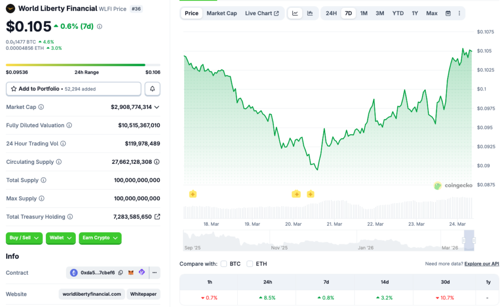 • WLFI rises 8.5% as sentiment improves on geopolitical and policy news