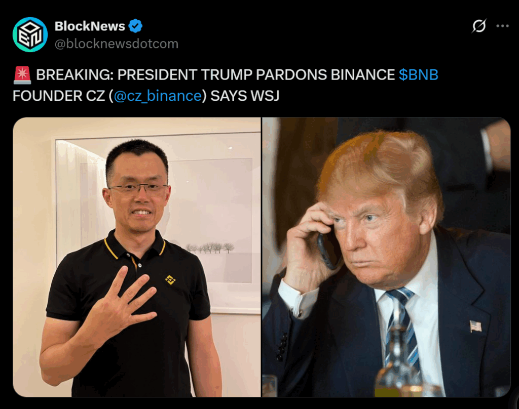The alleged pardon represents one of the most dramatic intersections yet between U.S. political power and the crypto industry. CZ, who faced legal challenges and stepped back from Binance’s leadership in late 2023, remains one of the most influential figures in digital finance — his return to prominence could alter how regulators and markets approach centralized crypto exchanges going forward.