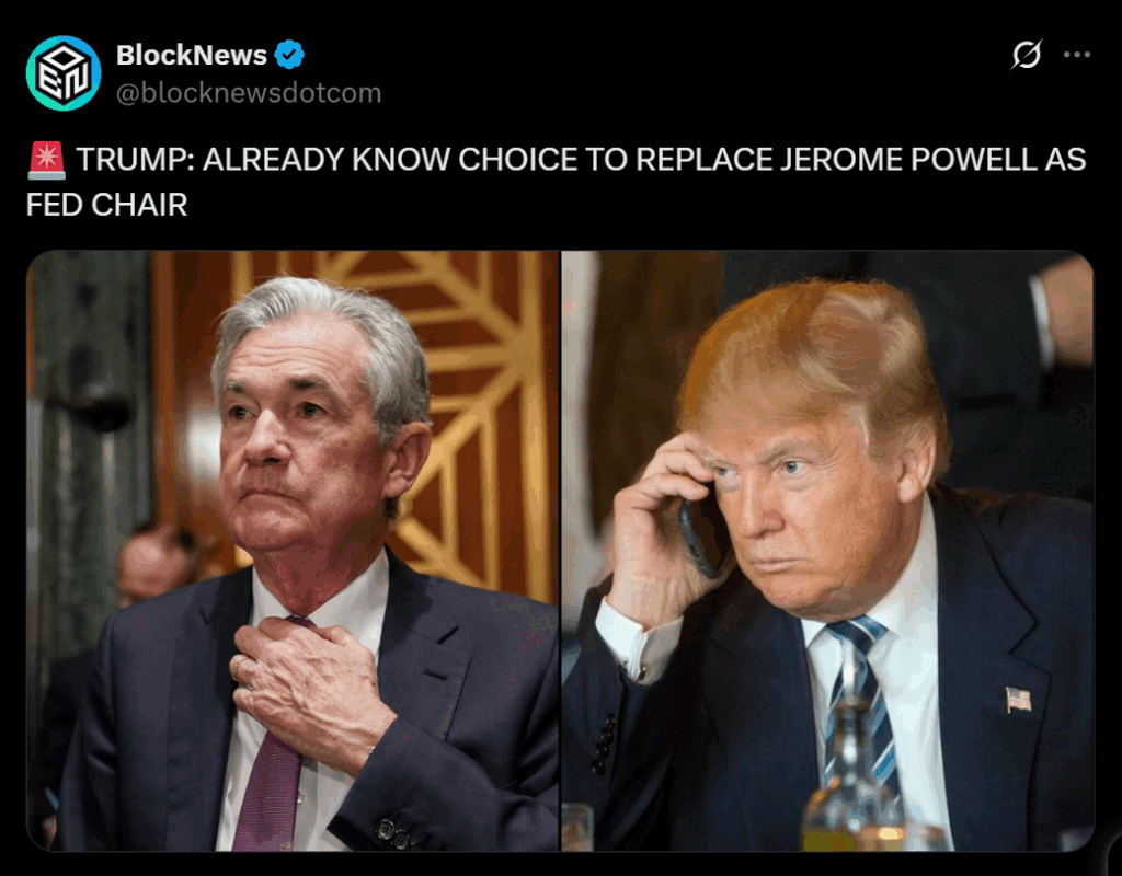 President Donald Trump signaled Tuesday that he has effectively chosen who will replace Federal Reserve Chair Jerome Powell once Powell’s term ends in May 2026. The president told reporters, “I think I already know my choice,” adding that interviews are already underway and the shortlist is locked in. The moment instantly shifted market attention, as traders began bracing for what could become one of the most consequential monetary appointments in years.