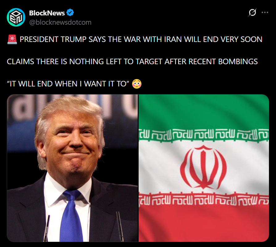 - President Trump said the war with Iran could end soon because “there is practically nothing left to target”
