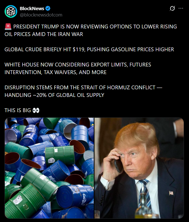 Financial markets, including cryptocurrencies, often react to geopolitical instability and inflation pressures. Rising energy costs and ongoing conflict in the Middle East have already contributed to increased volatility across stocks, commodities, and digital assets.