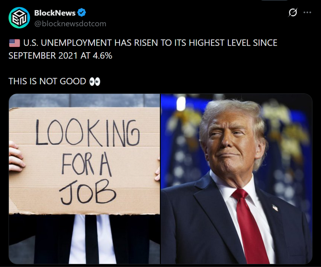 - The U.S. unemployment rate rose to 4.6%, its highest level in four years.