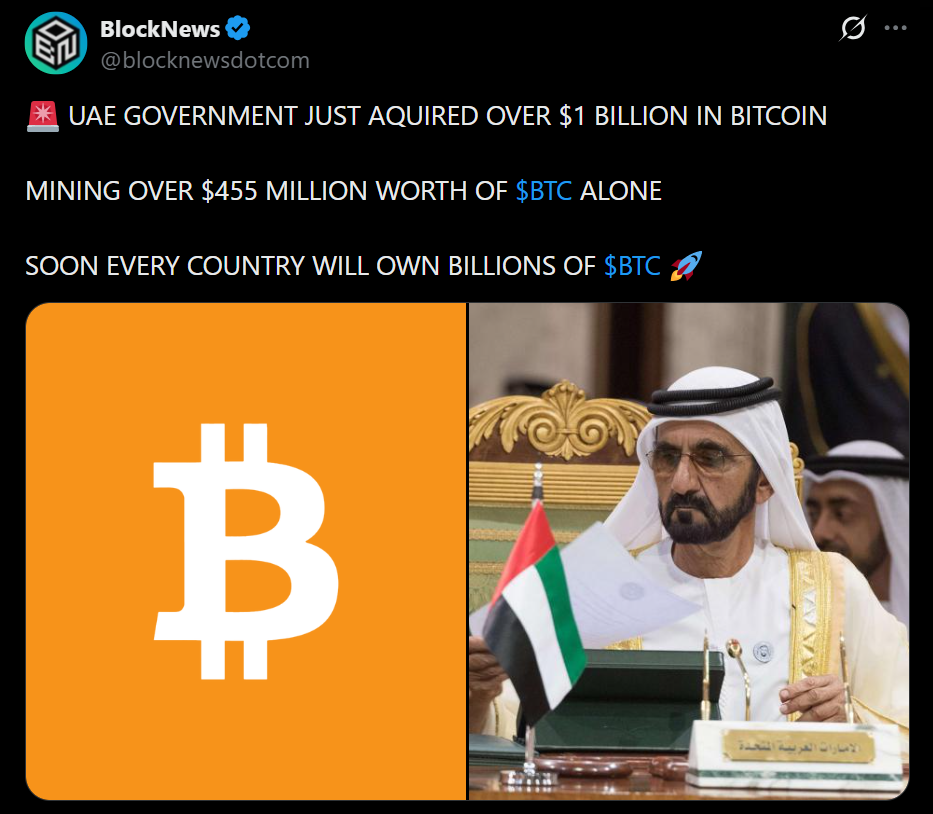 The latest update suggests the UAE Royal Group now holds about 6,782 BTC. That sounds huge in dollar terms, but in Bitcoin supply terms it’s still small, roughly 0.03% of circulating BTC. The important takeaway is behavior: the state appears to be holding, not selling.