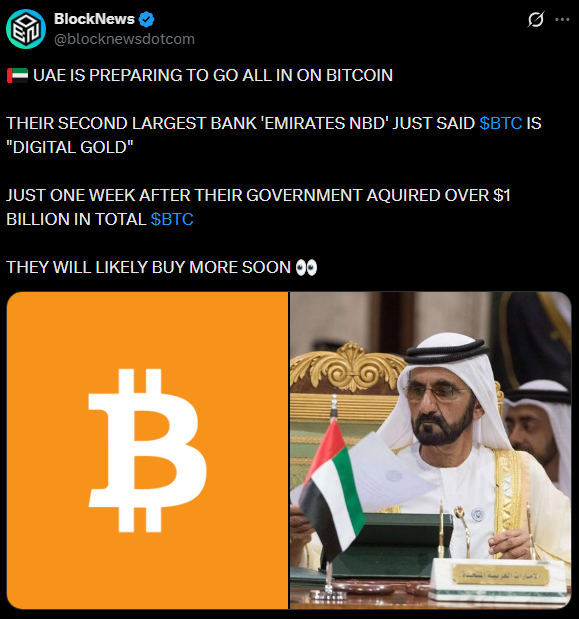 Emirates NBD, the UAE’s second-largest bank, has publicly referred to Bitcoin as “digital gold,” signaling a meaningful shift in institutional tone. This language moves Bitcoin away from the speculative category and places it closer to traditional stores of value like bullion. For a bank of this scale to adopt that framing suggests growing comfort with crypto as a macro asset.