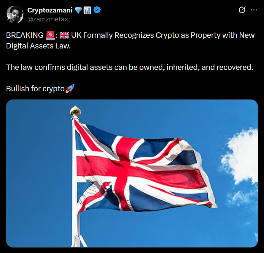 - The UK now legally recognizes crypto and NFTs as property under a new “digital assets” category.