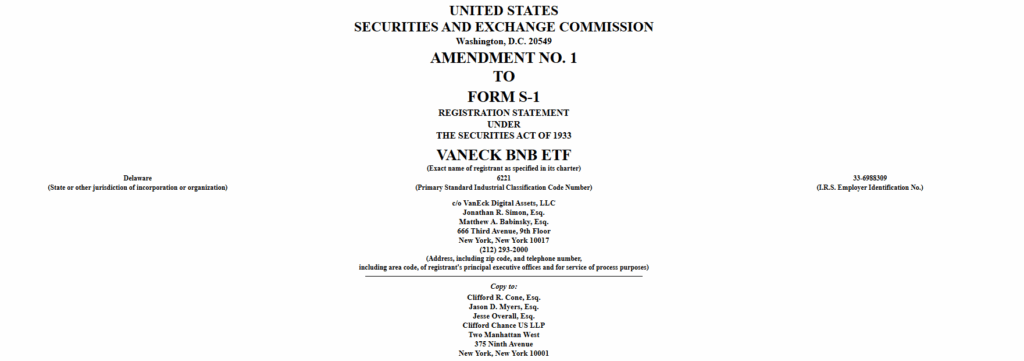 VanEck has officially pulled staking out of its proposed spot BNB ETF, a sharp shift just weeks after the same firm rolled out staking in its new Solana product. In an updated S-1 filing submitted to the U.S. Securities and Exchange Commission, the asset manager made it clear that the BNB Trust will not use any of its tokens for staking at launch. It also warned there is no guarantee staking will ever be added later on, even if market conditions improve or demand rises.