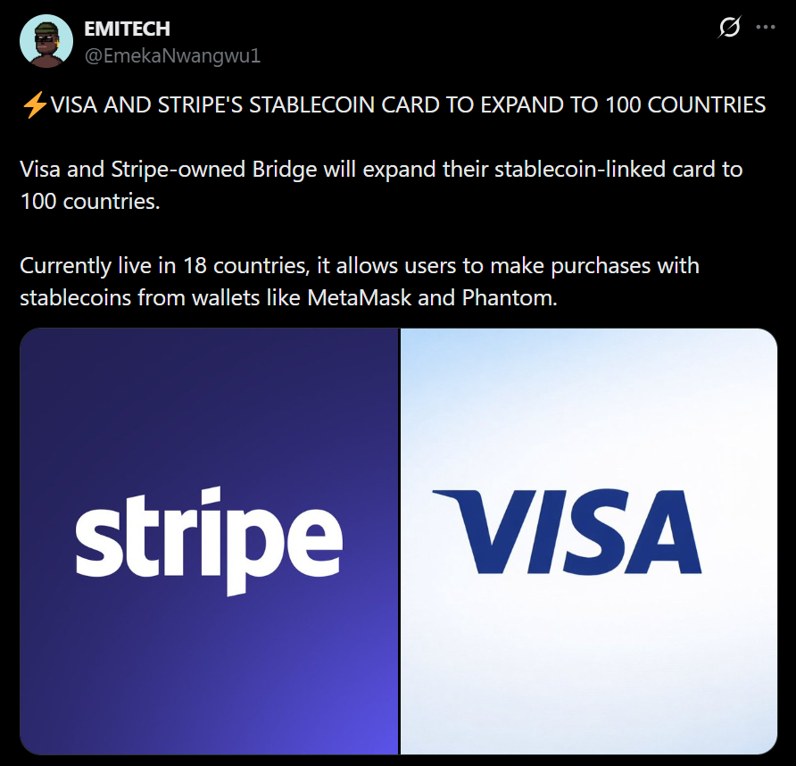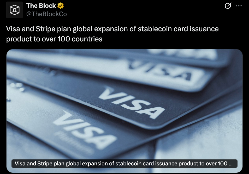 That framing is gone now. Expanding to more than 100 countries transforms stablecoin payments from a regional test into global infrastructure. Stablecoins are no longer confined to DeFi protocols or trading desks. They are plugging directly into the largest card network on earth, and that shift is structural.