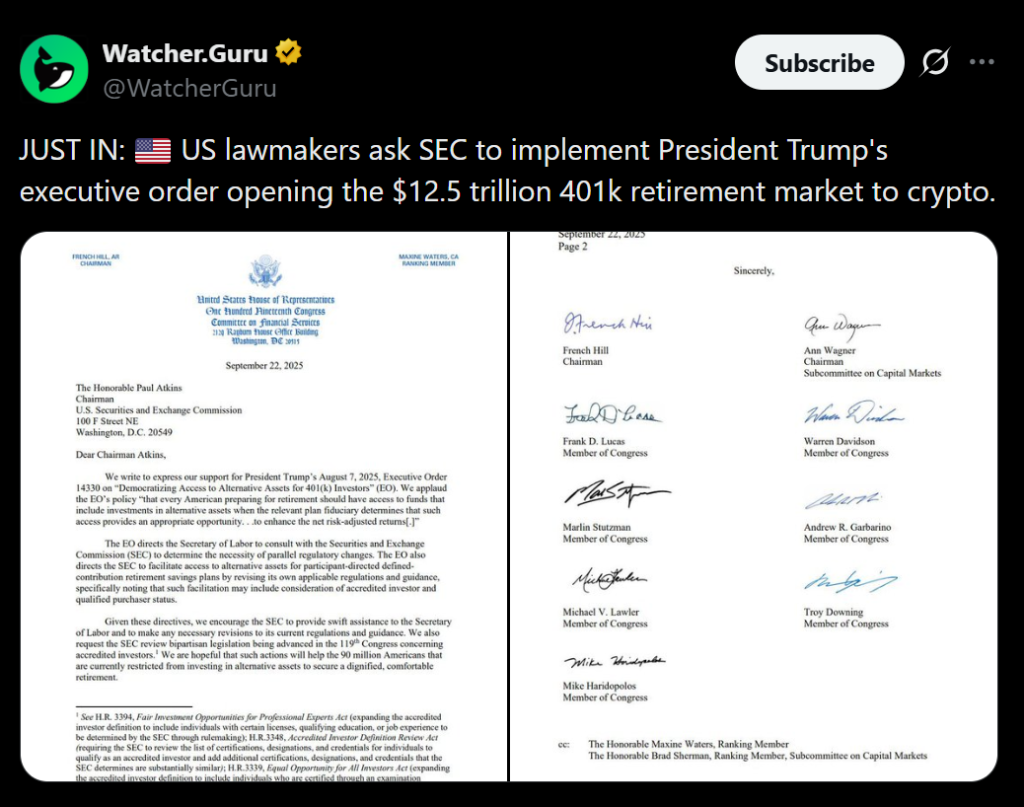 - New rule may allow crypto exposure inside 401(k) retirement plans