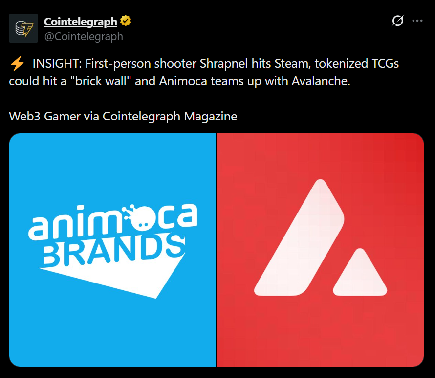 Despite these challenges, capital hasn’t left the space. Partnerships like Animoca Brands working with Avalanche show that investment is still active, but the approach is changing. There’s less appetite now for projects built purely around token loops, and more focus on games that can stand on their own.