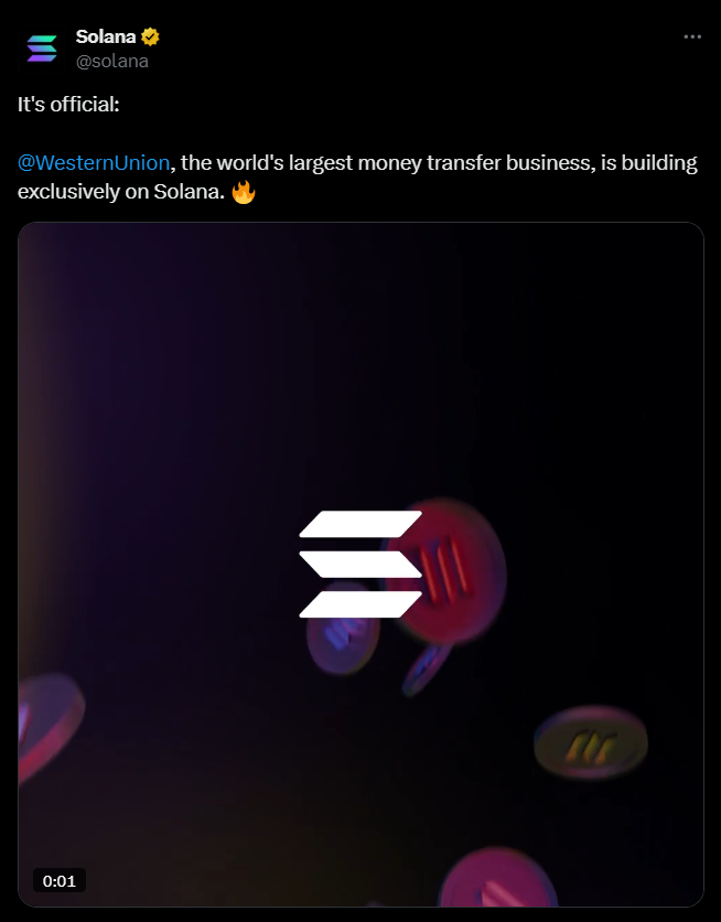 Solana’s appeal lies in its ability to finalize transactions in under a second, with fees costing fractions of a cent — ideal for a product serving global remittance users. In markets where transferring $200 can still cost up to 7%, routing payments through Solana could significantly cut costs. Moreover, the network’s robust liquidity and active developer ecosystem give Western Union access to established wallets, exchanges, and on/off-ramps on day one.
